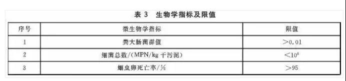 污泥园林利用与人群接触场合时,其生物学指标及限值应满足表3的要求。