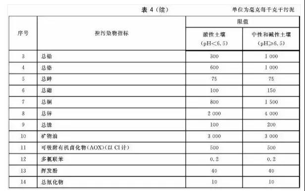 污泥土地改良利用时,其污染物指标及限值应满足表4的要求。