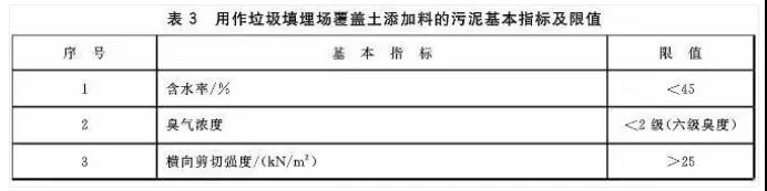 污泥用作填埋场覆盖土添加料时,其污染物指标及限值应满足表2的要求,基本指标及限值应满足表3的要求。