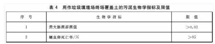 污泥用作垃圾填埋场终场覆盖土添加料时,其生物学指标还需满足GB 18918中要求,见表4。