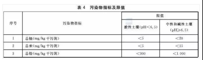 污泥园林绿化利用时,其污染物指标及限值应满足表4的要求。