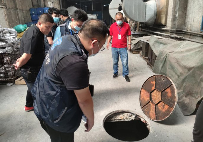 当天下午,执法人员到达该企业,发现企业一楼的废气污染防治设施(喷淋塔)没有开启,于是对企业生产车间进行详细排查,进入打磨、抛光生产车间时,执法人员看到触目惊心的一幕——透过被铁网围住的窗户,企业的后山竟被染上了一片银灰色!